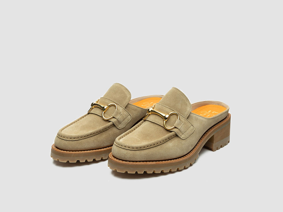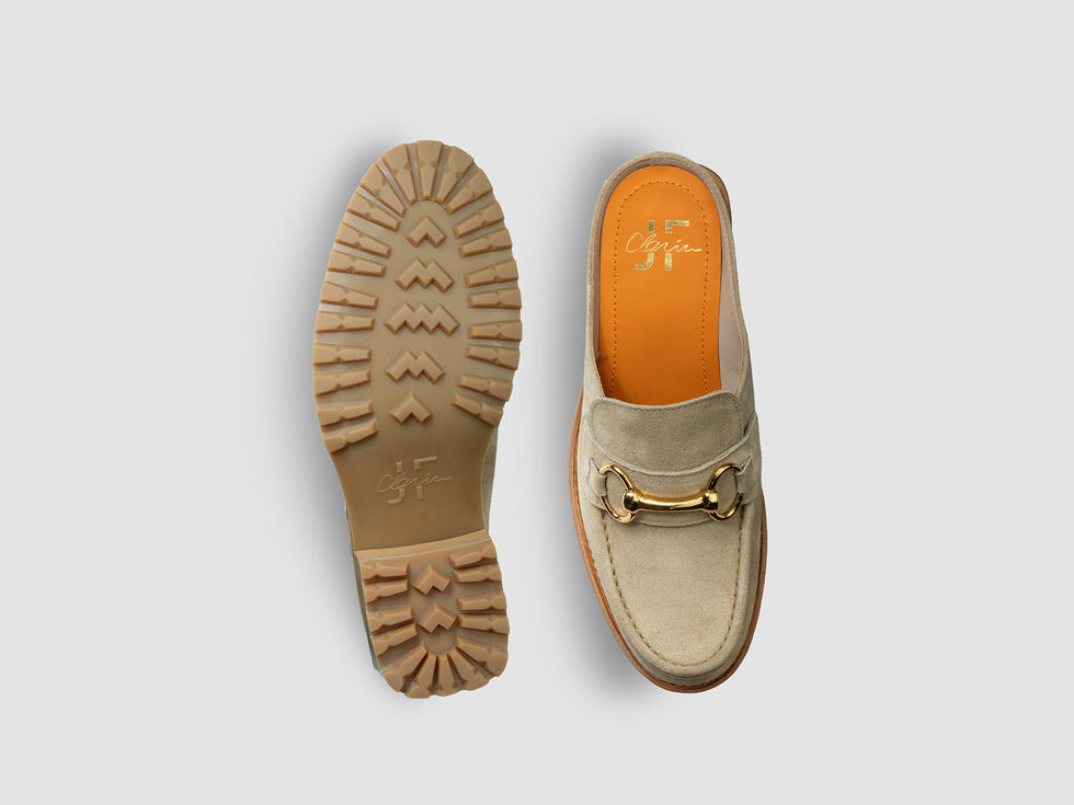 Le Mocassin Mule Deauville en velours sable revisite l’intemporel avec une touche d’originalité et de raffinement. Sa matière noble, douce et lumineuse, confère à ce modèle un style chic et résolument tendance, idéal pour accompagner les femmes en quête d’élégance contemporaine.